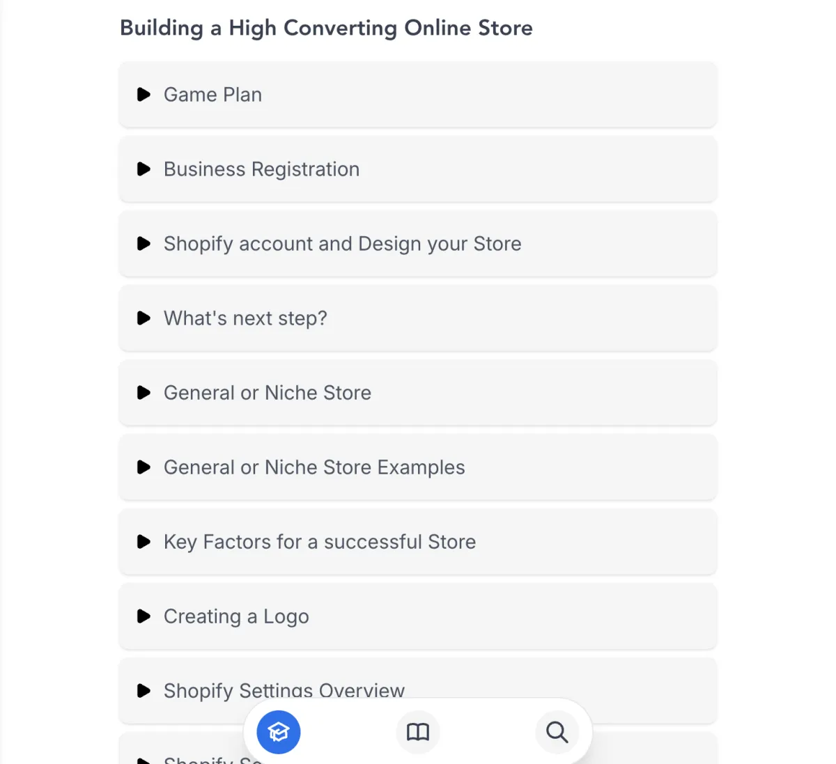 Break down course modules, including topics like product selection, supplier relationships, and marketing strategies.